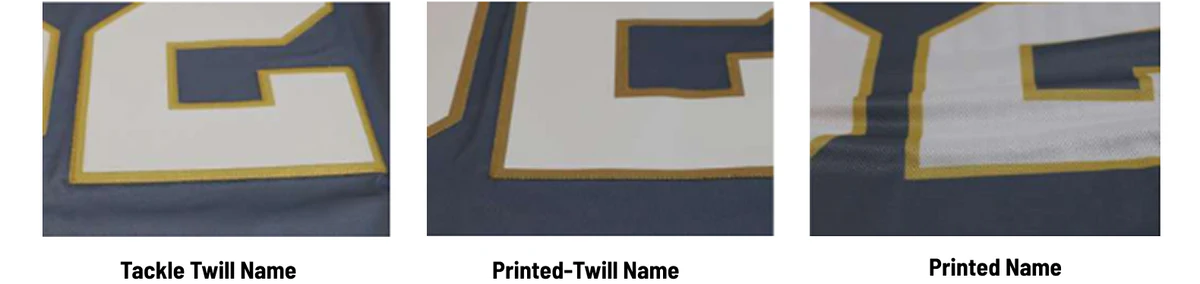A printed number refers to a player’s umber that is directly printed onto the jersey fabric, rather than being stitched or sewn on. This can be done through various printing techniques, such as screen printing, heat transfer, or dye-sublimation. Printed numbers are generally flatter to the touch and can allow for more detailed fonts or special effects. While this method is cost-effective and suitable for mass production, the print may not be as durable as tackle twill, especially with frequent washing or heavy use.